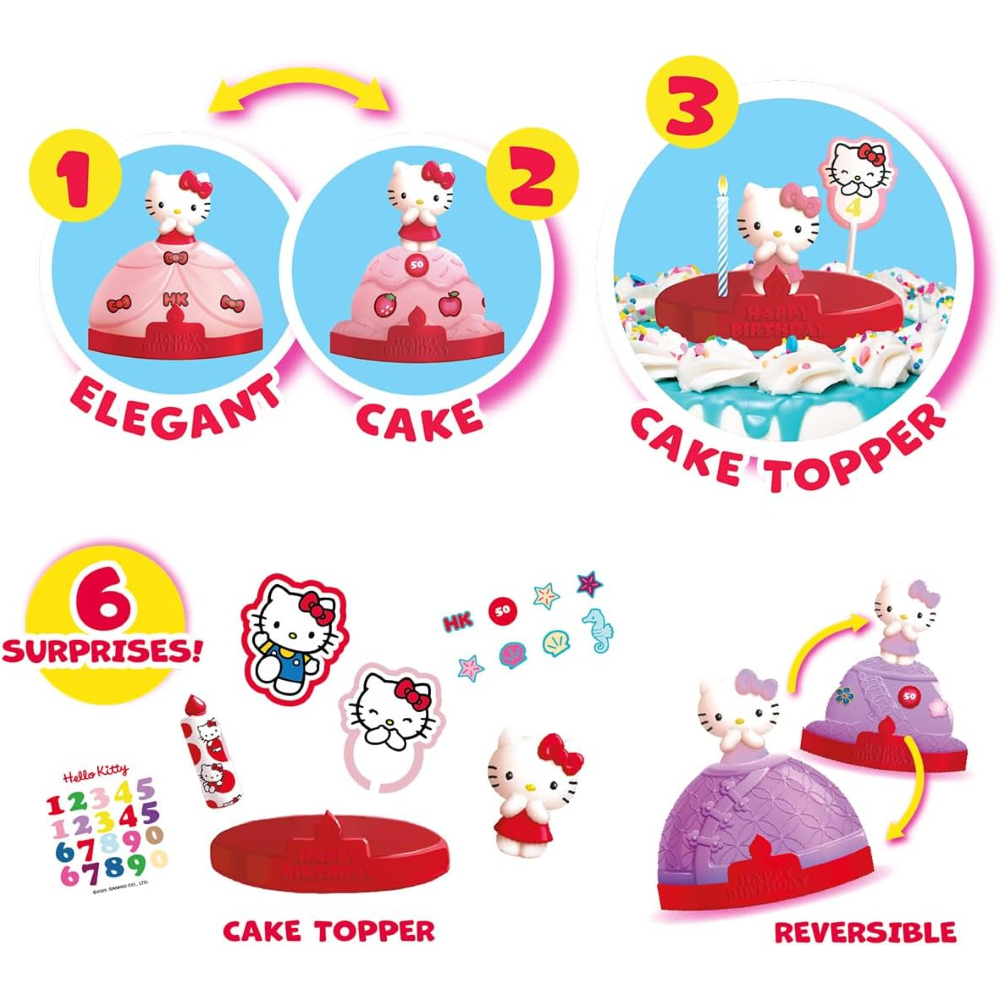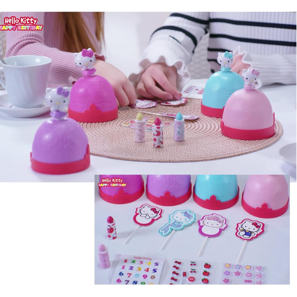 ACCESSORI PER UN COMPLEANNO UNICO - Ogni confezione include diversi accessori che arricchiscono il gioco e la decorazione. Scopri gli adesivi morbidi e colorati che permettono di personalizzare Hello Kitty e renderla ancora più speciale per la festa