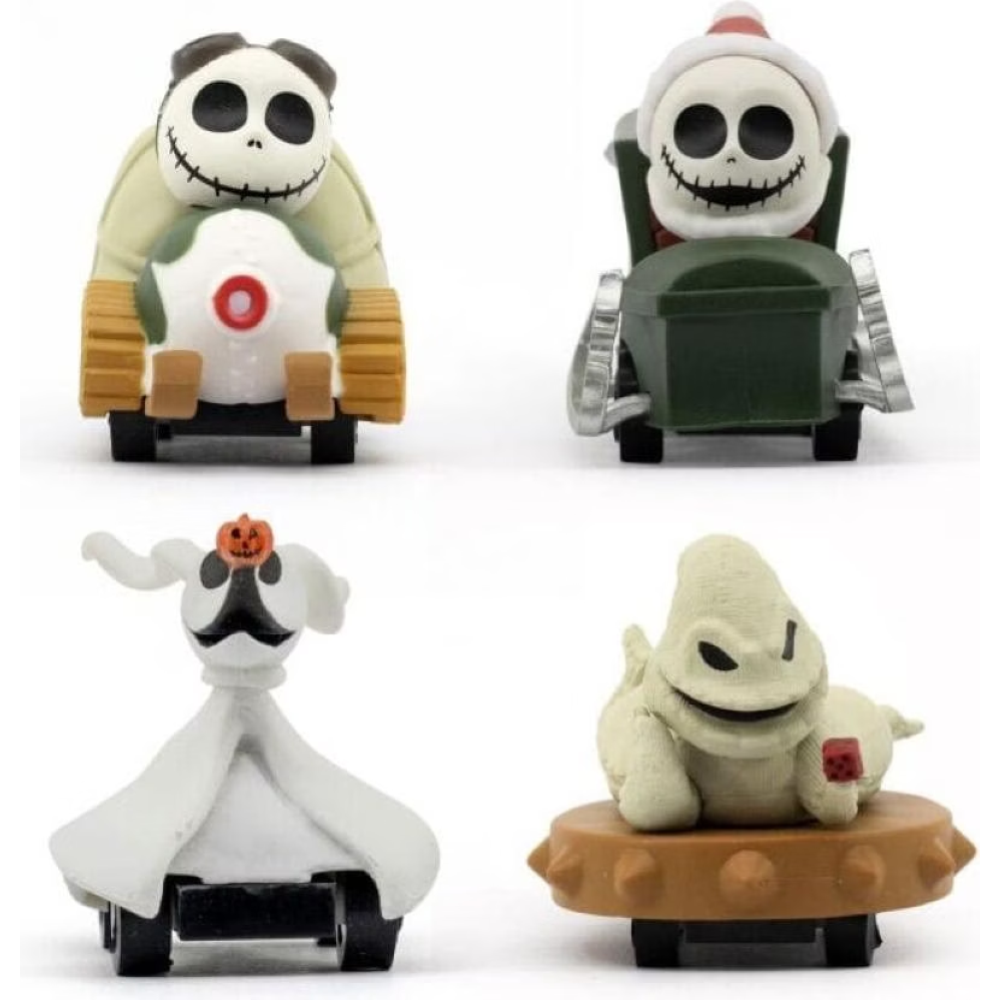 Include 12 veicoli a retrocarica con personaggi di "Nightmare Before Christmas"