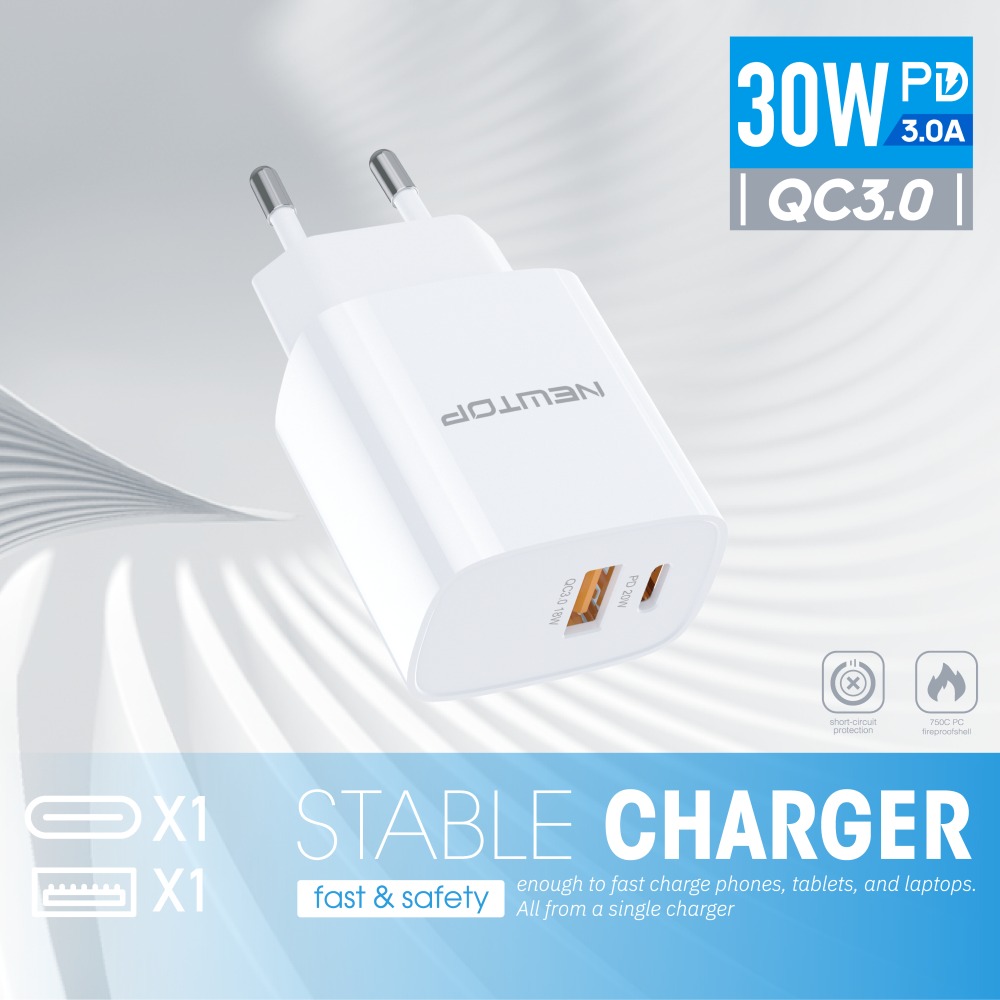 NEWTOP CM68 CARICATORE DA MURO QC3.0 + PD 30W