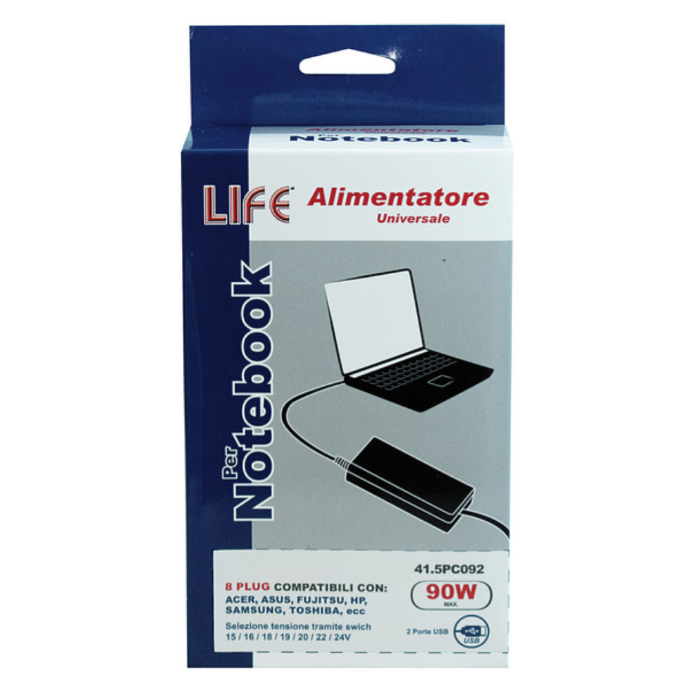 LIFE ALIMENTATORE UNIVERSALE NOTEBOOK 15-24V MANUALE 8 PLUGS 90W