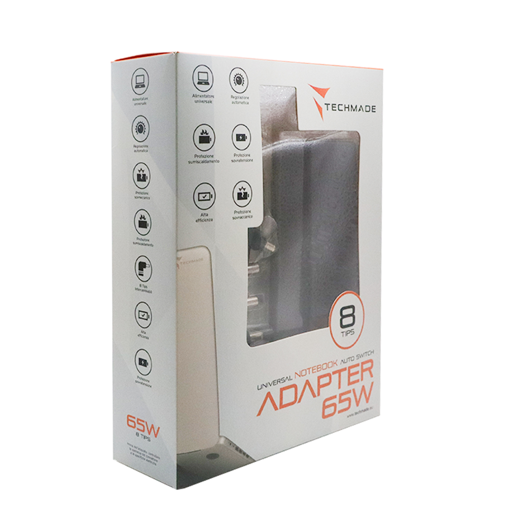 TECHMADE ALIMENTATORI UNIVERSALI PER NOTEBOOK 65W CON 8 TIPS - TM-AFUA06