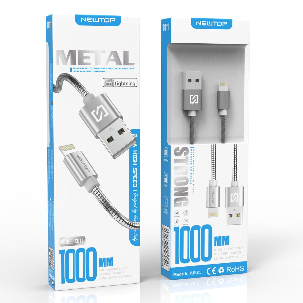 NEWTOP CU11 STEEL CAVO 100CM USB/LIGHTNING (Lightning Iphone 100cm - Argento cromato)