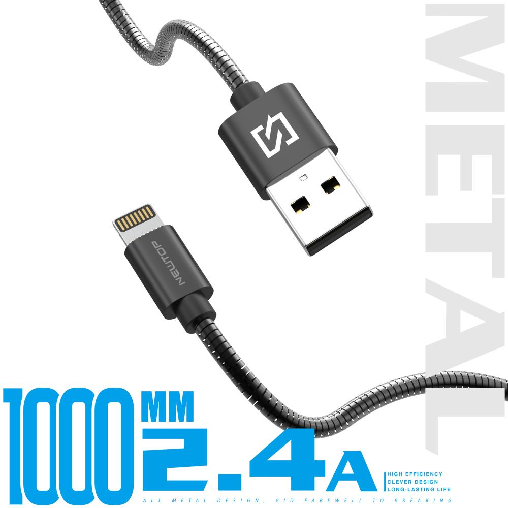 NEWTOP CU11 STEEL CAVO 100CM USB/LIGHTNING (Lightning Iphone 100cm - Nero lucido)