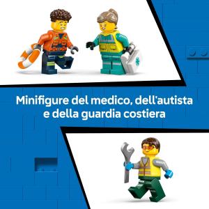 INCLUDE 3 VEICOLI ICONICI: questo kit di costruzione include un aereo medico LEGO® City, un hovercraft della guardia costiera e un camion di servizio, oltre alle minifigure di un medico, della guardia costiera e del soccorritore alpino