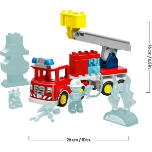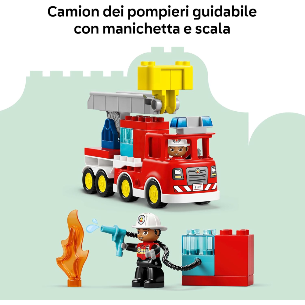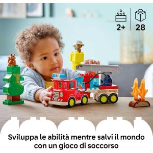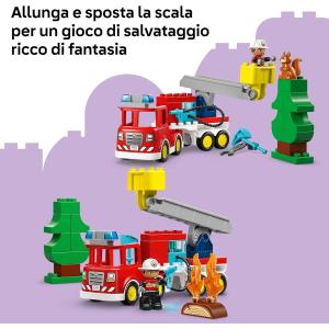 GIOCATTOLO LEGO® DUPLO®: questo giocattolo di finzione consente ai bambini di immaginare di essere un eroe di tutti i giorni che usa la scala per spegnere le fiamme di un incendio con la manichetta mentre uno scoiattolo osserva l’azione