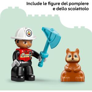 TANTE CARATTERISTICHE DIVERTENTI: include un modello di camion dei pompieri con rimorchio staccabile, un pompiere, uno scoiattolo LEGO® DUPLO®, un’ascia e una chiave inglese per incoraggiare il gioco di fantasia
