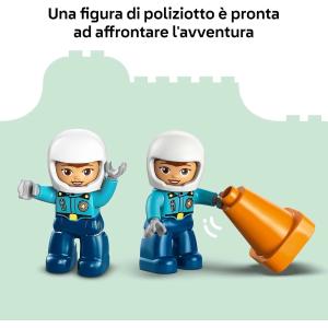 GIOCATTOLO DELLA POLIZIA PER IL GIOCO CREATIVO: i bambini creano divertenti storie di aiuto comunitario e utilizzano le capacità motorie complesse per posizionare l’agente di polizia sulla sua moto LEGO® DUPLO® e guidarla intorno ai coni