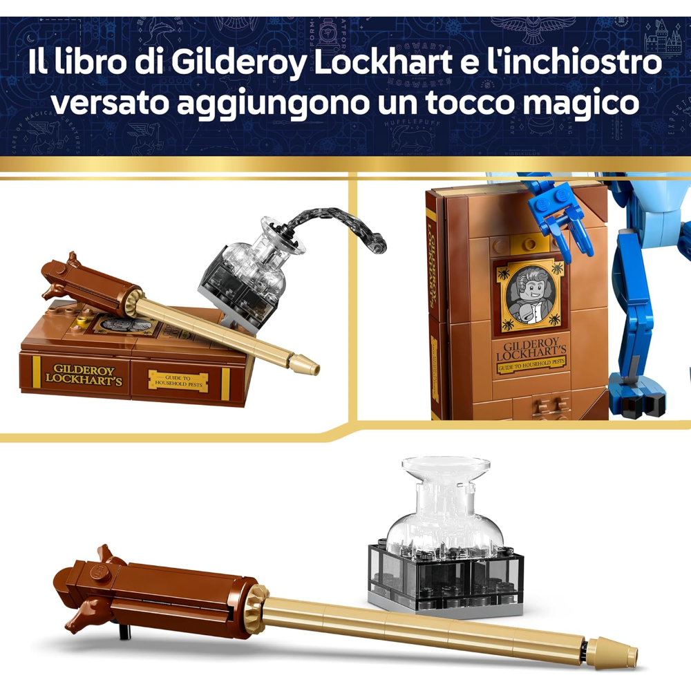 ACCESSORI ICONICI: esponi il personaggio con il libro costruibile di Gilderoy Lockhart™ e la boccetta di inchiostro semi-rovesciata
