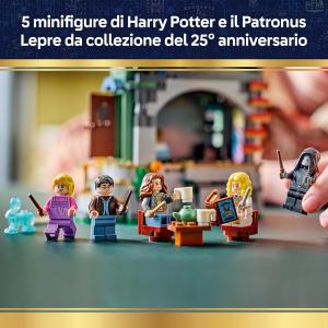 5 MINIFIGURE LEGO® HARRY POTTER™: Luna Lovegood™, Xenophilius Lovegood, Harry Potter, Hermione Granger™ e un Mangiamorte, ciascuno con una bacchetta, più un Patronus™ Lepre collezionabile del 25° anniversario