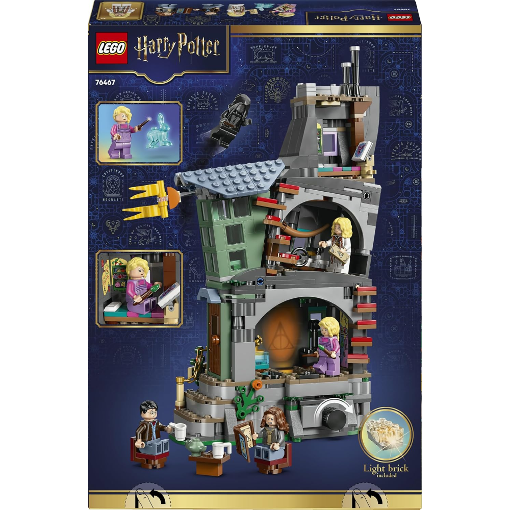 Rimuovi i mobili dalla cucina per facilitare il gioco e attiva il mattoncino luminoso LEGO per proiettare le immagini de La storia dei tre fratelli sulla parete. Dai un’occhiata alla camera da letto di Luna e al laboratorio di stampa di Xenophilius Lovegood. E ricrea la scena della fuga degli eroi con il corno dell’Erumpent. Il set include anche il Patronus™ Lepre di Luna, parte di una serie di Patronus collezionabili del 25° anniversario di LEGO Harry Potter (in set disponibili separatamente).