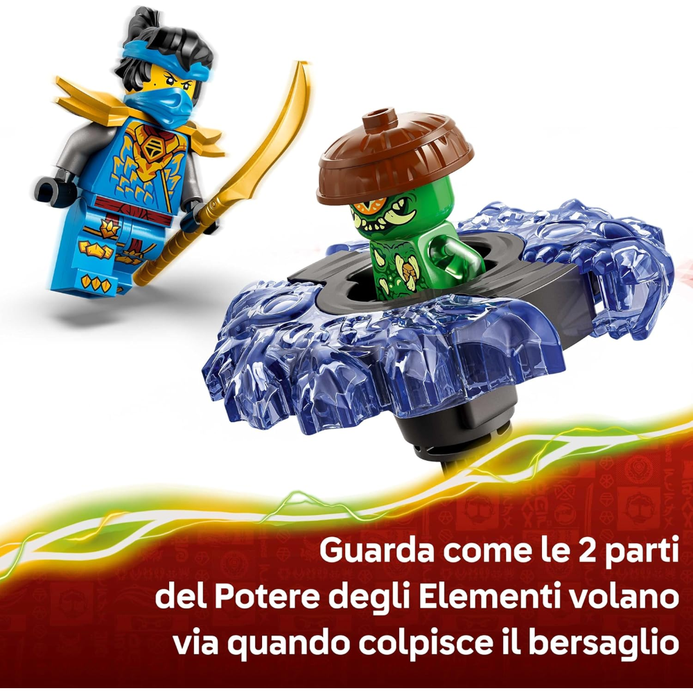 2 MINIFIGURE NINJAGO®: questo giocattolo d’avventura contiene Nya e un malvagio Mostro della Mutazione che possono essere inseriti all’interno dello spinner in modo che i bambini possano ricreare battaglie tra il bene e il male ricche di azione