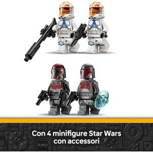 4 MINIFIGURE DI STAR WARS™ LEGO®: equipaggia i 2 Super Commando mandaloriani con 2 jetpack e le 3 pistole blaster e i 2 clone trooper della 332sima compagnia con un blaster e un fucile blaster