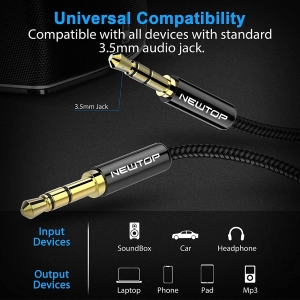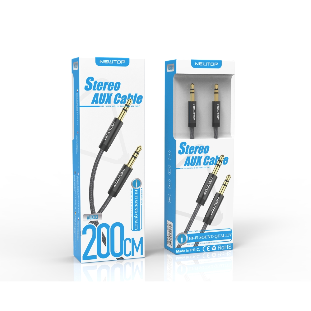 To use an electronic device with any other device equipped with an audio output or headphones, you will need to use our Aux 3.5mm Audio cable. The NewTop AUX03 cable has got 3 connectors and a length of 200 cm, so you can use your device or place it wherever you want, without needing to put it close to the audio equipped device.