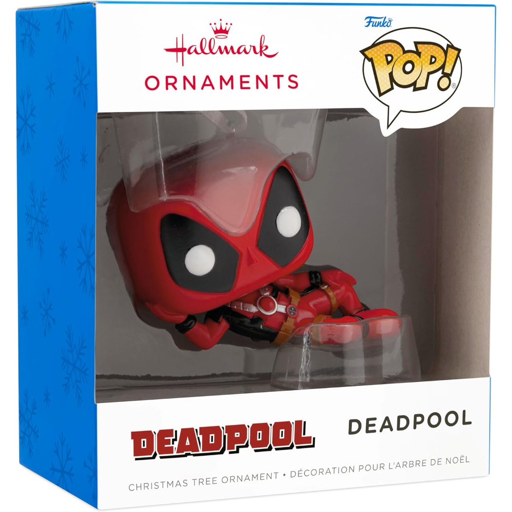 DEADPOOL NATALE DEADPOOL: unisciti al tuo anti-eroe preferito per un mondo di azione e avventura con l'ornamento da appendere Marvel Deadpool Funko Pop di Hallmark. Appendilo con orgoglio in casa e causa caos e malizia per salvare la giornata