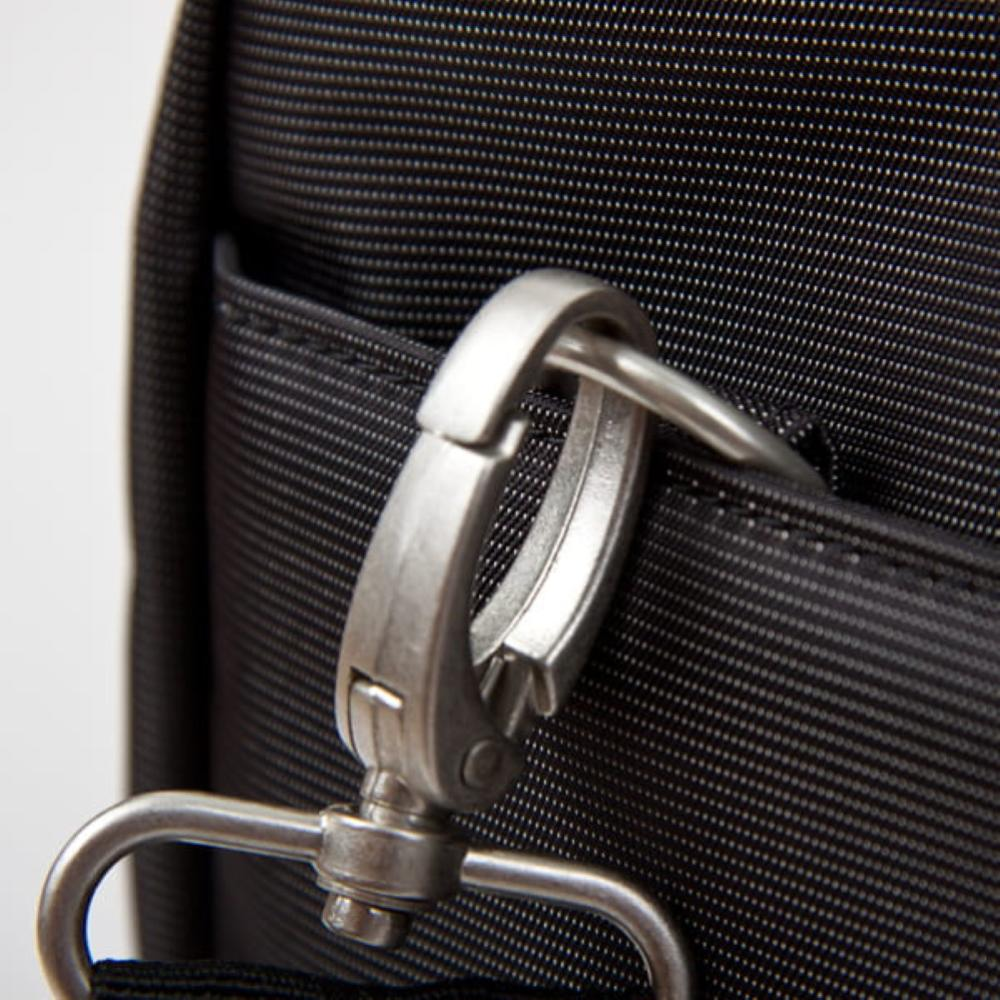 Nella parte posteriore è presente un comodo cinturino per fissare la borsa al manico della custodia.