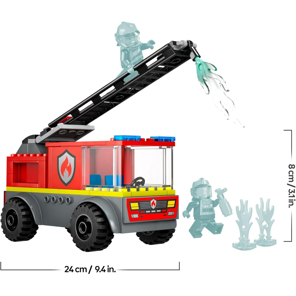 Camion LEGO dei pompieri con divertenti funzioni per il gioco di fantasia: il veicolo giocattolo è dotato di cabina di guida a 2 posti e scala sollevabile con estintore, per le minifigure dei pompieri