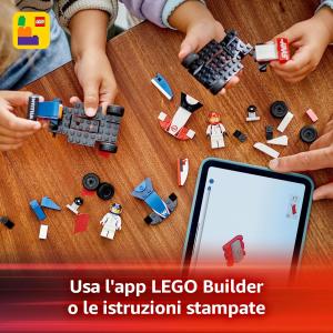 Divertimento con la costruzione digitale: questo set di auto F1 LEGO include un elemento Starter Brick LEGO, una semplice guida illustrata per la costruzione e una guida digitale 3D nell’app LEGO Builder