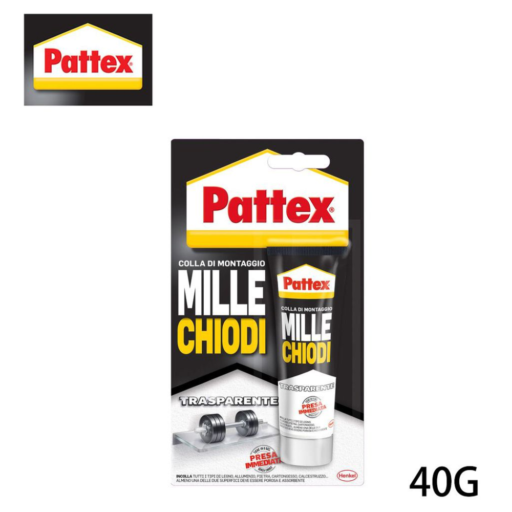 Confezione – Pattex Millechiodi Trasparente colla invisibile per applicazioni in interni, a base acqua, senza solventi, trasparente