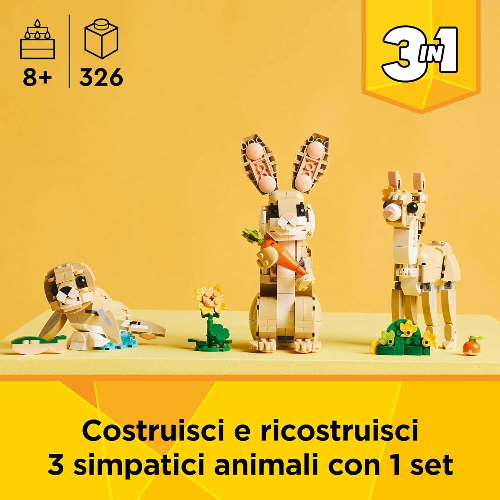 Coniglietto regalo per i giovani: un set LEGO 3 in 1 il che offre una divertente esperienza di costruzione, un'idea regalo di compleanno per le bambine e i bambini che amano la natura e gli animali giocattolo da costruire