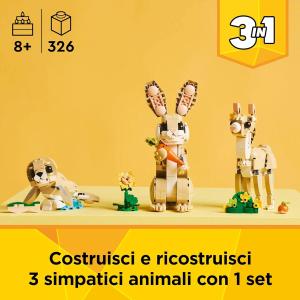 Tante possibilità creative: I piccoli possono dar vita ad emozionanti avventure con 3 diversi animali LEGO (i modelli non possono essere costruiti contemporaneamente): un simpatico coniglietto, una foca giocattolo e un lama