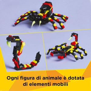 Infinite opzioni di gioco creativo: i piccoli possono inventare storie con 3 diversi modelli di animali (i modelli non possono essere costruiti contemporaneamente): un ragno giocattolo, uno scorpione o un serpente giocattolo