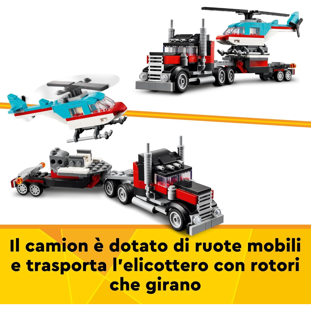 3 set di veicoli in 1 scatola – con questo giocattolo dell’Autocarro con elicottero LEGO® Creator, i bambini e le bambine dai 7 anni in su possono costruire e ricostruire 3 set diversi utilizzando gli stessi mattoncini
