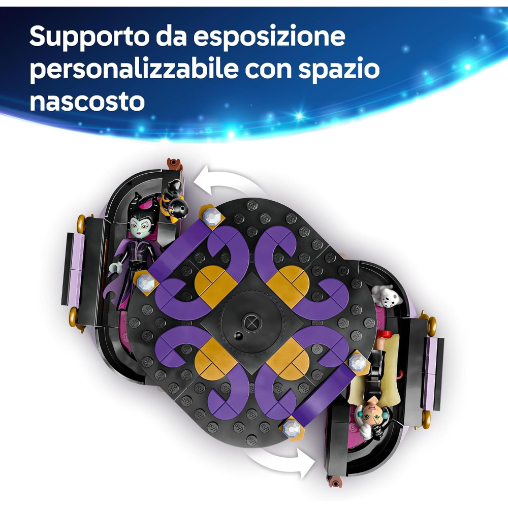 Giochi Disney con le costruzioni LEGO: questo kit, ricco di dettagli, è un'ottima idea regalo di compleanno per i fan Disney, per le bambine e i bambini che amano giocare a travestirsi segunedo lo stile delle cattive Disney