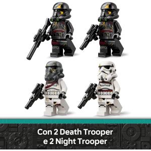 4 personaggi LEGO Star Wars: il giocattolo comprende le minifigure di 2 Death Trooper e 2 Night Trooper, ciascuno dotato di un casco e di un blaster, pronti a scatenare battaglie spaziali