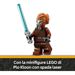 Veicolo giocattolo con minifigure LEGO di Plo Koon: questo set da costruzione fantasy include il personaggio Star Wars di Plo Koon con una spada laser blu giocattolo, che può essere agganciate alla parte inferiore dell'astronave LEGO