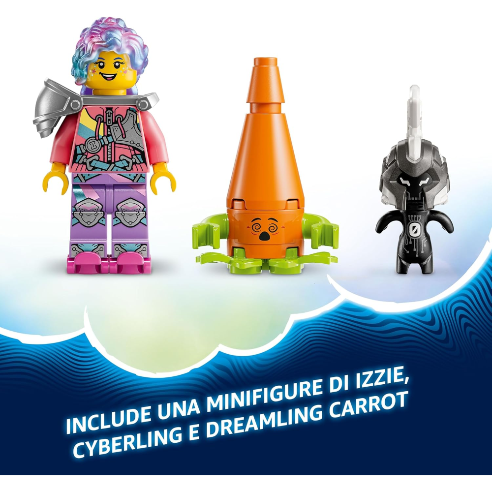 Giocattoli da sogno con una minifigure LEGO DREAMZzz: il set di giochi fantasy include l’eroina Izzie, posizionabile su Bunchurro, oltre al Cyberling e una Carota Dreamling per incoraggiare il gioco di ruolo creativo dei piccoli