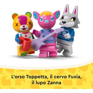 Minifigure dei personaggi LEGO Animal Crossing: il set contiene 3 figure dalla serie di videogame: l’orso Toppetta, il cervo Fuxia e il lupo Zanna