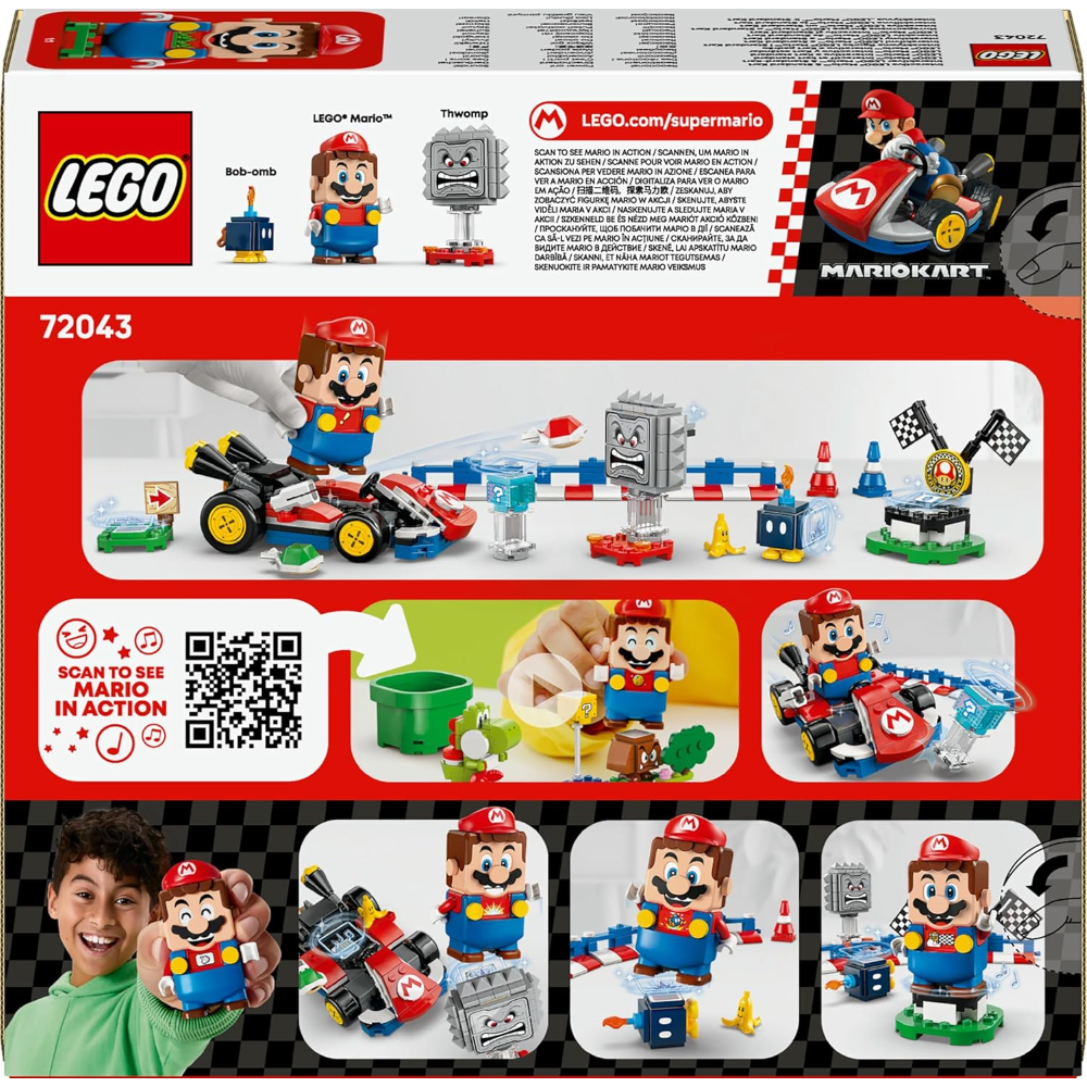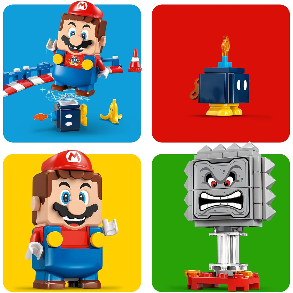 Gioco interattivo: sfida gli avversari con il Mario Kart giocattolo, guadagna premi digitali dalla scatola oggetto, sconfiggi il Bob-omba e il Twomp, osserva come LEGO Mario reagisce alle basi LEGO verdi e rosse e altro ancora