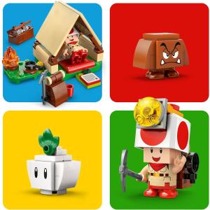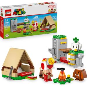 Gioco LEGO Super Mario per bambini da 6 anni in su: costruisci una tenda e un falò, vai a caccia di tesori, fai crollare il ponte, sconfiggi i nemici e molto altro ancora, con il set In Campeggio con Capitan Toad
