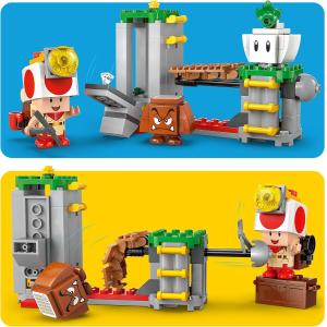 3 personaggi LEGO Super Mario: questo giocattolo LEGO Super Mario ispirato ai videogiochi comprende Capitan Toad, una rapa e un Goomba, oltre a uno zaino, un piccone, una padella e un diamante