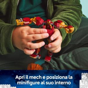 Mech LEGO di Iron Man giocattolo: questo set di giochi Marvel è dotato di braccia, gambe e dita mobili, e di busto apribile che rivela una cabina di pilotaggio che può contenere la minifigure di Iron Man