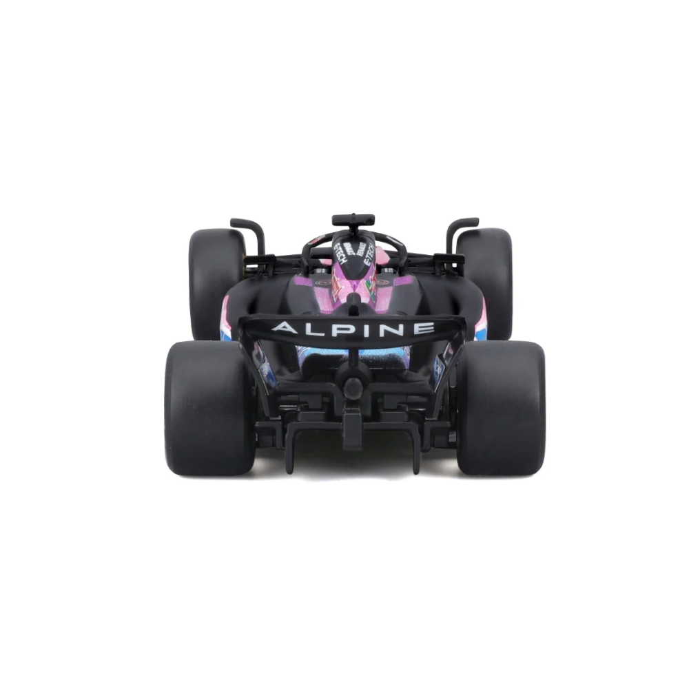 Con la sua livrea distintiva in blu e rosa, ispirata all'iconico design del team Alpine per la stagione, questo modellino è una riproduzione dettagliata dell'auto da corsa che ha fatto sognare gli appassionati sui circuiti di tutto il mondo.