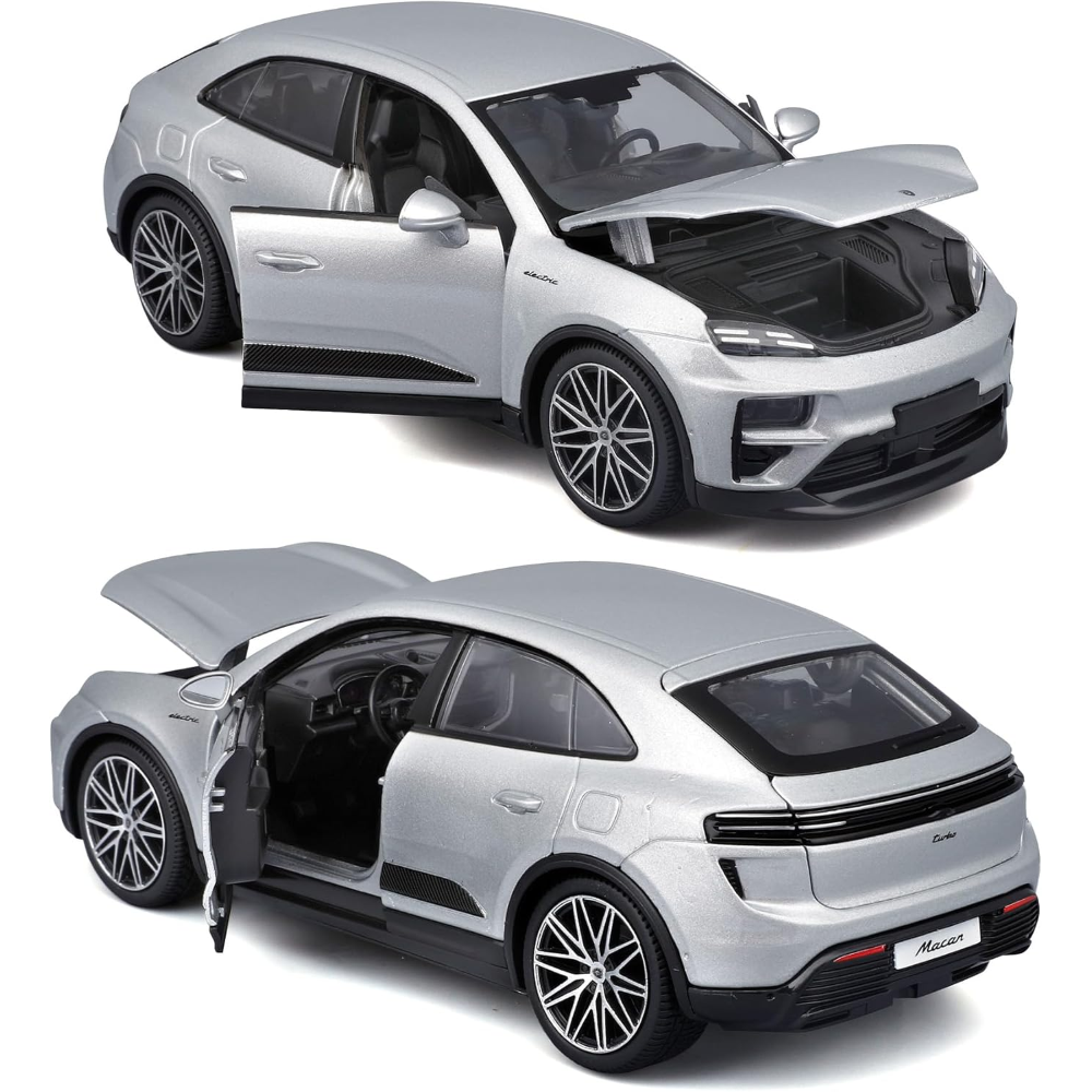 PORSCHE MACAN 4 ELECTRIC: Replica ufficiale in scala 1:24 del SUV elettrico Porsche, con linee dinamiche e dettagli curati che riproducono fedelmente l’innovativo design del modello originale.