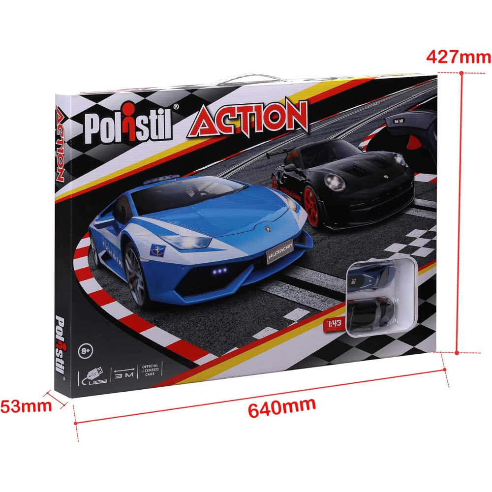 POLISTIL CHAMPION - Pista Elettrica con 2 Slot Car da Corsa in Scala POLIZIA 1:43