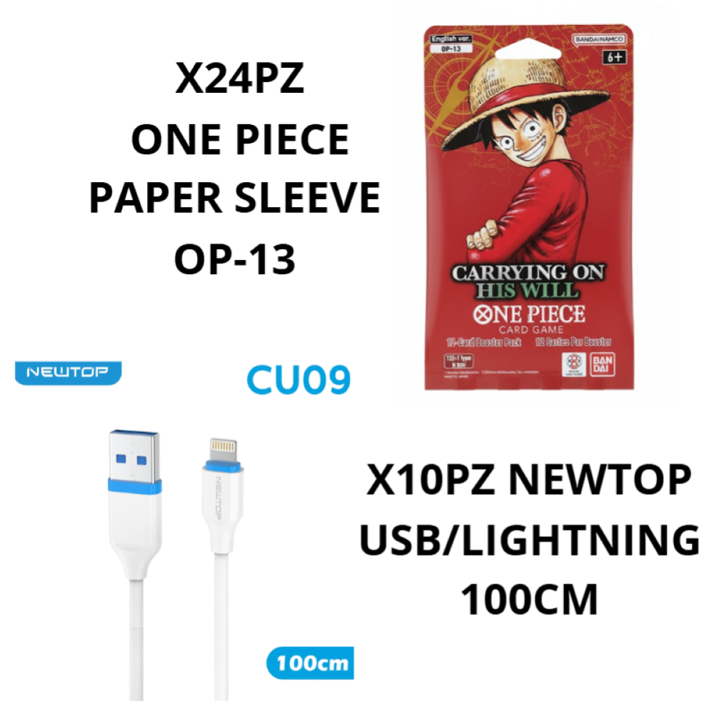 BUNDLE 24X PAPER SLEEVE One Piece Card Game OP-13 + 10PZ NEWTOP USB/LIGHTNING 100CM