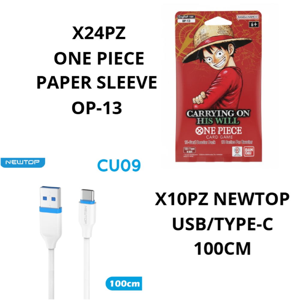 BUNDLE 24X PAPER SLEEVE One Piece Card Game OP-13 + 10PZ NEWTOP USB/TYPE-C 100CM