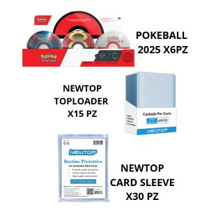 BUNDLE Pokemon - X6 POKEBALL TIN "OTTOBRE 2025 " + NEWTOP CARD SLEEVE (X30PZ) + NEWTOP TOPLOADER ( X15 PZ)