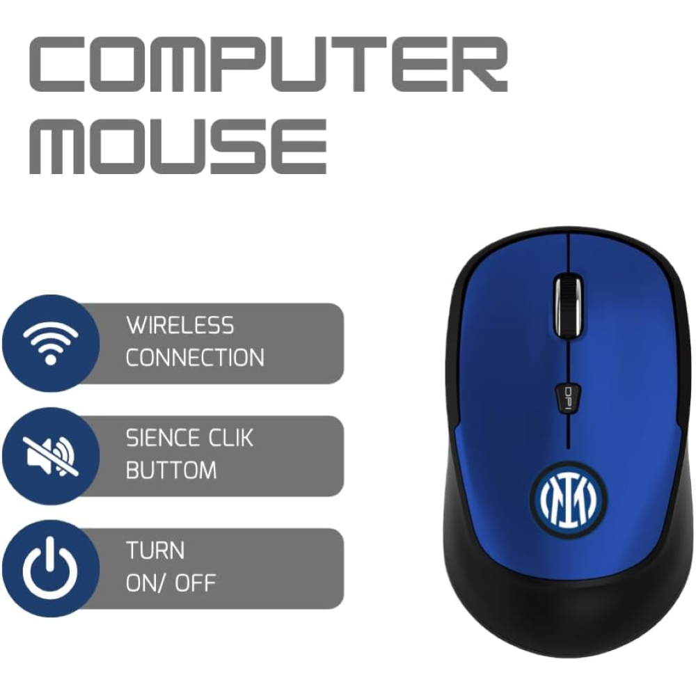 DESIGN UFFICIALE INTER - Mouse ottico con logo e colori della squadra, perfetto per veri tifosi.
