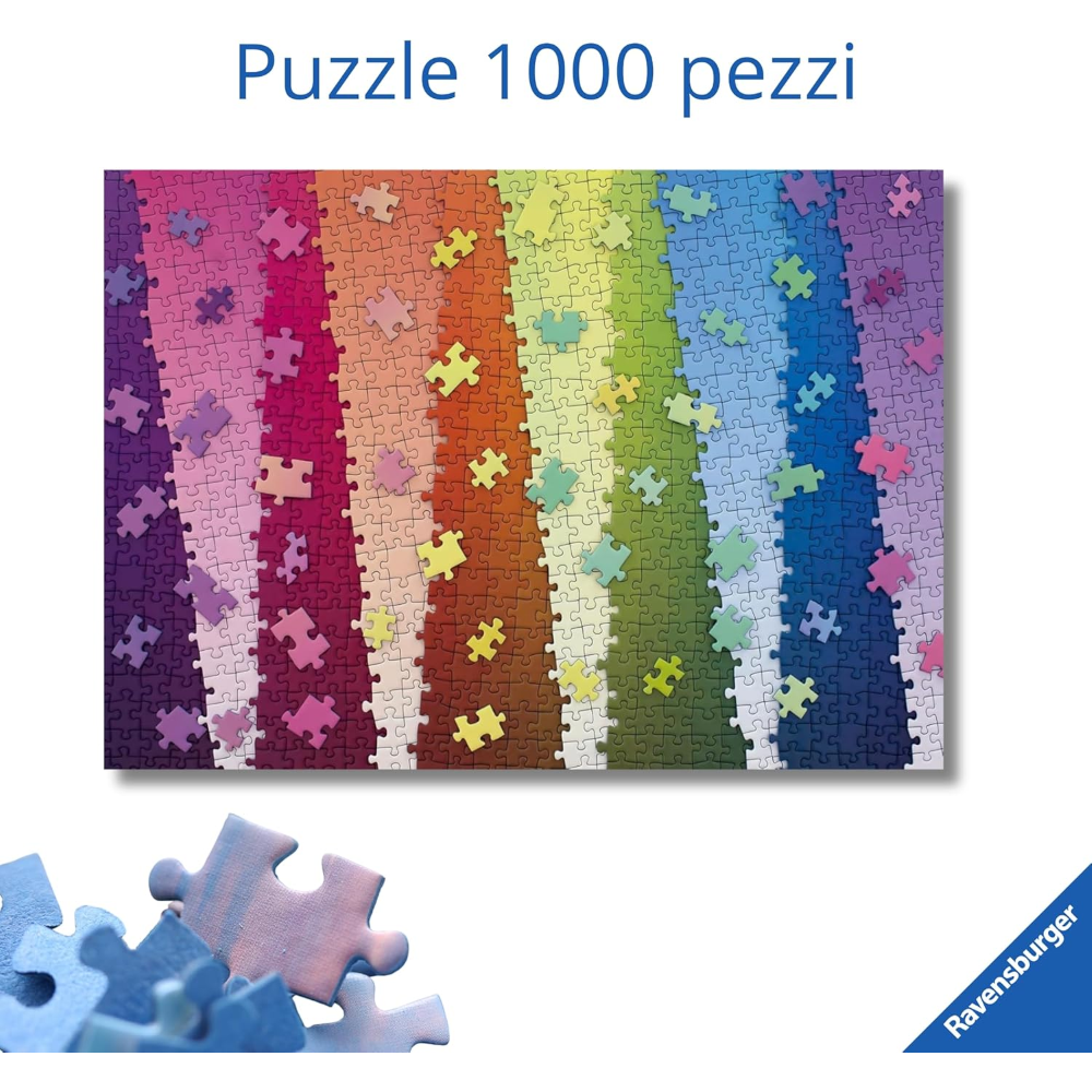 PUZZLE 1000 PEZZI: concediti una piacevole pausa relax con la linea da 1000 pezzi e, una volta completato il puzzle bambini e adulti, esponilo a parete con la colla Ravensburger Puzzle Permanent Conserver; grazie alla tecnologia Soft-Click, ogni pezzo di puzzle si incastra perfettamente.