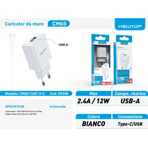 NEWTOP CM65 CARICATORE DA MURO 1USB 5V 2.4A CON CAVO TYPE-C