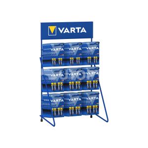 Esposizione completa e ordinata della gamma di batterie VARTA su uno spazio limitato.