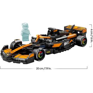 Dettagli autentici LEGO McLaren: il modello di auto da corsa F1, presenta il design della versione reale del 2024, tra cui la barra Halo, lala posteriore, gli adesivi dello sponsor e pneumatici posteriori larghi con stampa "Pirelli"
