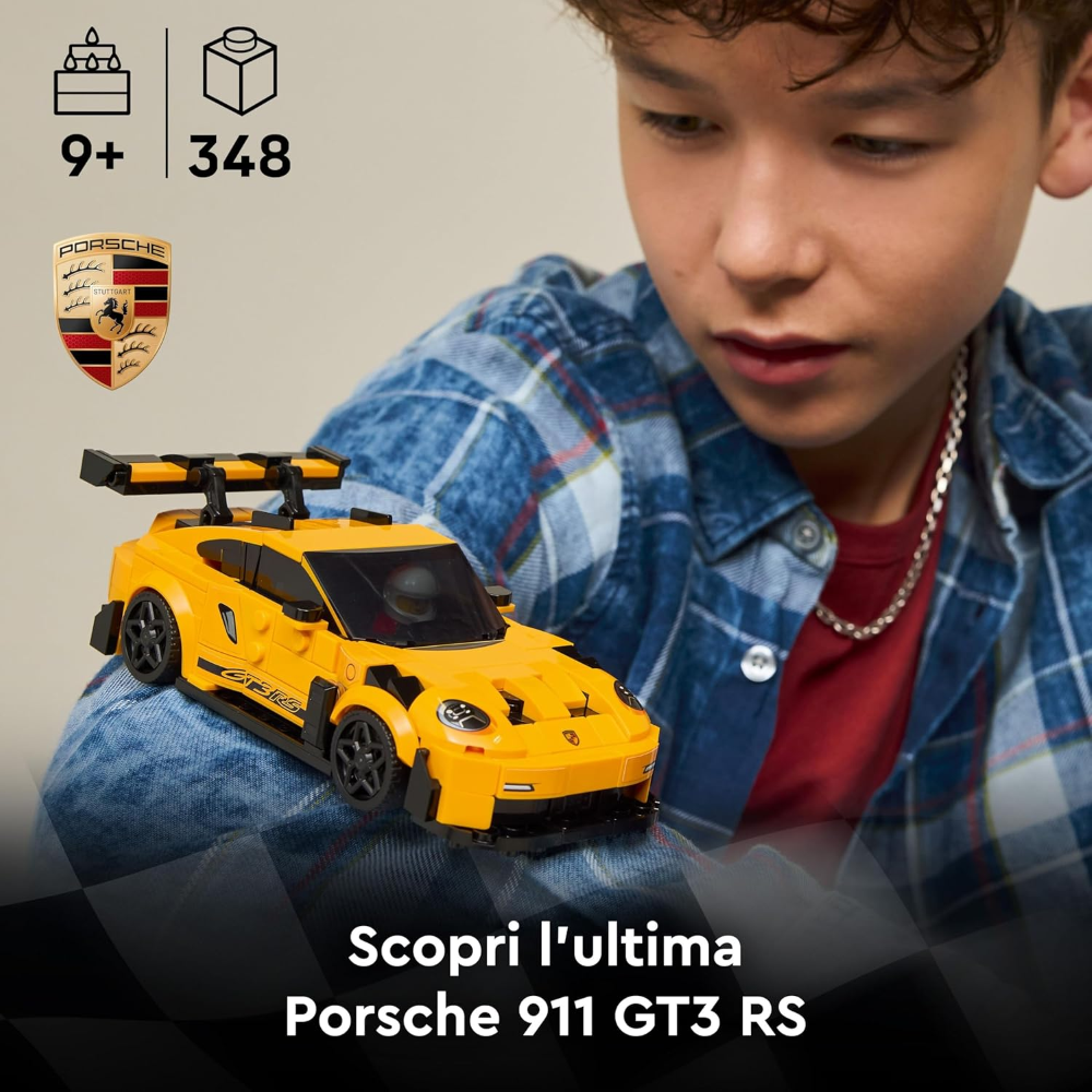 Macchina giocattolo per bambini costruibile: il modello di auto LEGO Speed Champions Super Car Porsche 911 GT3 RS è un gioco per bambini e bambine da 9 anni in su, con cui replicare l'iconica auto Porsche in mattoncini
